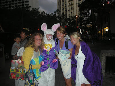 So we haven't blogged in awhile and I'm not so good at the writing part. I just like the pictures. But we have done some fun things lately! Jill has left us.. we are sad about that. We had a going away party for her and some delicious dinner. Life is not the same without her here. We had a big bbq party at Kahana bay with the Evans, a family we babysit. It was super fun! That night we went to the West side of the Island and went camping. It is kind of sketchy over there for the white people so we went out in the middle of nowhere. We had a fire, the boys caught us some crab and fish for dinner that we cooked, and we made a sauna at the beach... yes a sauna! We woke up in the morning to about a hundred dolphins swimming about 50 yards out in front of us just hanging out and showing off flipping around. There were also two whales out further jumping out of the water slappin their tails. It was amazing!! Only in Hawaii right. Mckalls mom also came out with her friend Kim and surprised us on Monday to stay for Easter! It is so nice to have a little piece of home and have motherly figures around. Katie leaves us tomorrow to go home over Easter weekend and I am missin the fam like crazy. A month left here in paradise. Until the adventures continue....